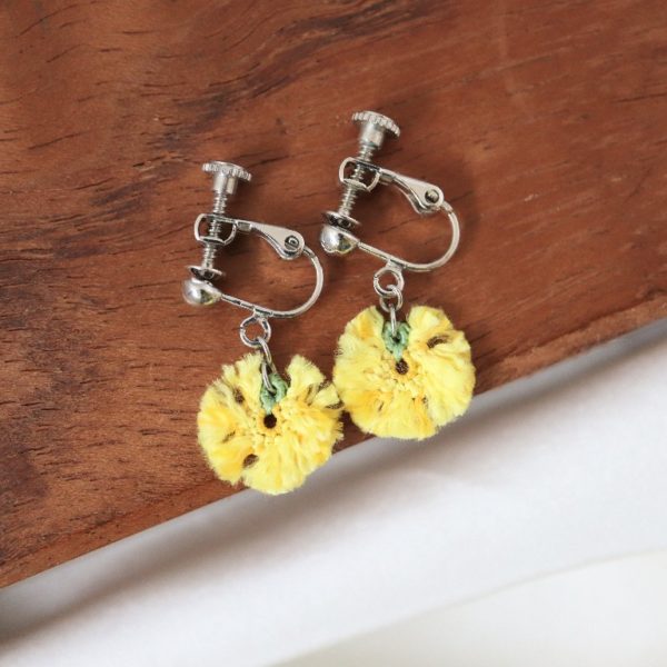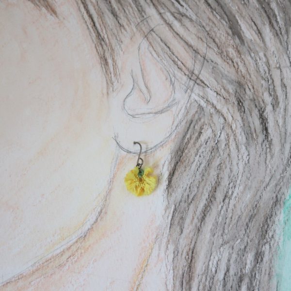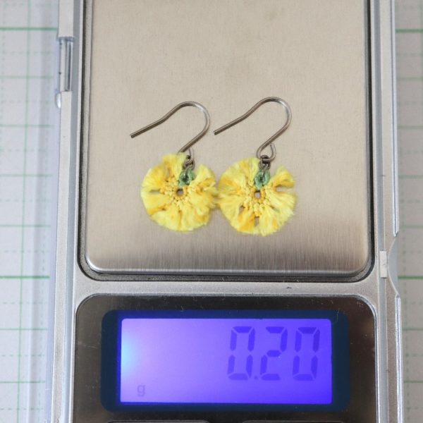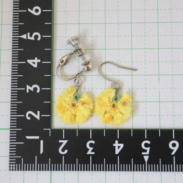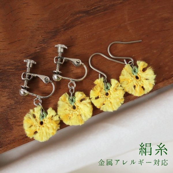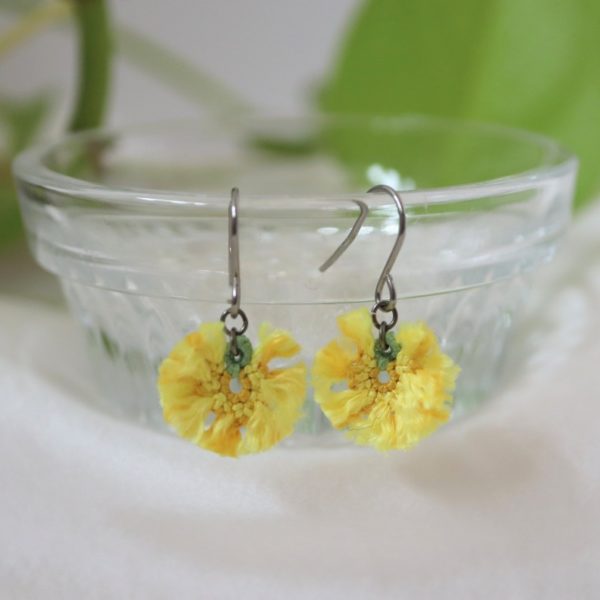 春の訪れとともに咲くミモザの花のように、心がゆるみ「ほわほわ~」と気持ちが明るくなるようなデザインの耳飾りです。