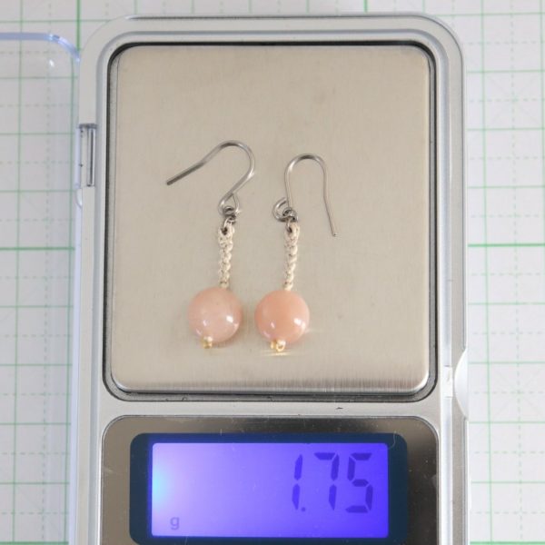 ミルキーなオレンジ色が女性らしさをさらに引き立てる天然石に、ライトベージュ色の絹糸を組み合わせ、マクラメ編みで制作いたしました。