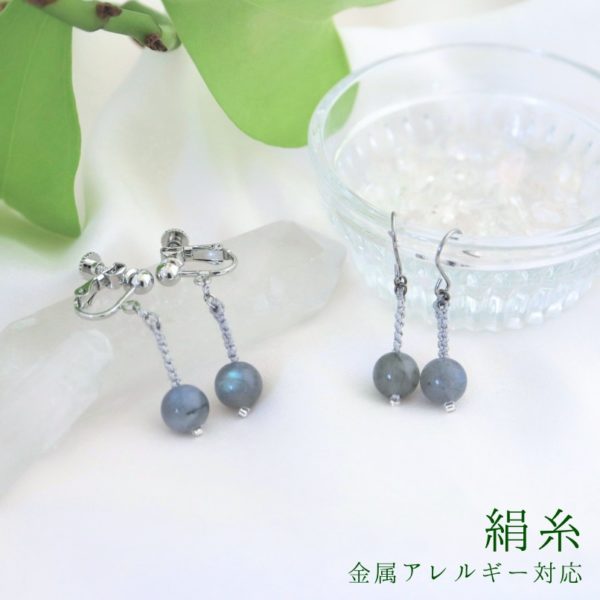 ※こちらの天然石は角度によって青い艶めきが現れます。可能な限り左右の艶めきを揃えていますが、それぞれに個体差がございますことをご了承くださいませ。