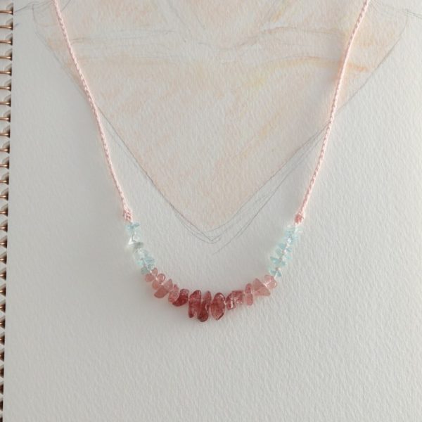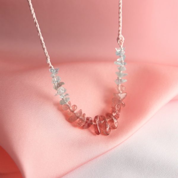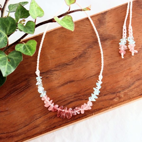 水色とピンク色の天然石が可愛らしいネックレス。