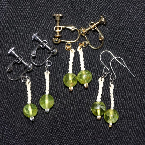 絹糸は、水や汗に濡れてもできるだけ良い状態を保てるように、ロウ引きを施しております。小さな細かなデザインも、大きな大胆なデザインも、誠実に制作いたしております。お肌に優しい絹糸の心地良さと、金属アレルギー対応パーツの安心感をどうぞご体感くださいませ。